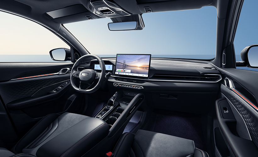 En la parte trasera,New Coolray ofrece amplio espacio para los pasajeros, pensado para viajes cómodos y relajados. Los asientos están tapizados en cuero, con un diseño elegante y detalles premium. Incluyen apoyabrazos central con posavasos y luz de ambiente, que aportan confort y una sensación más sofisticada.