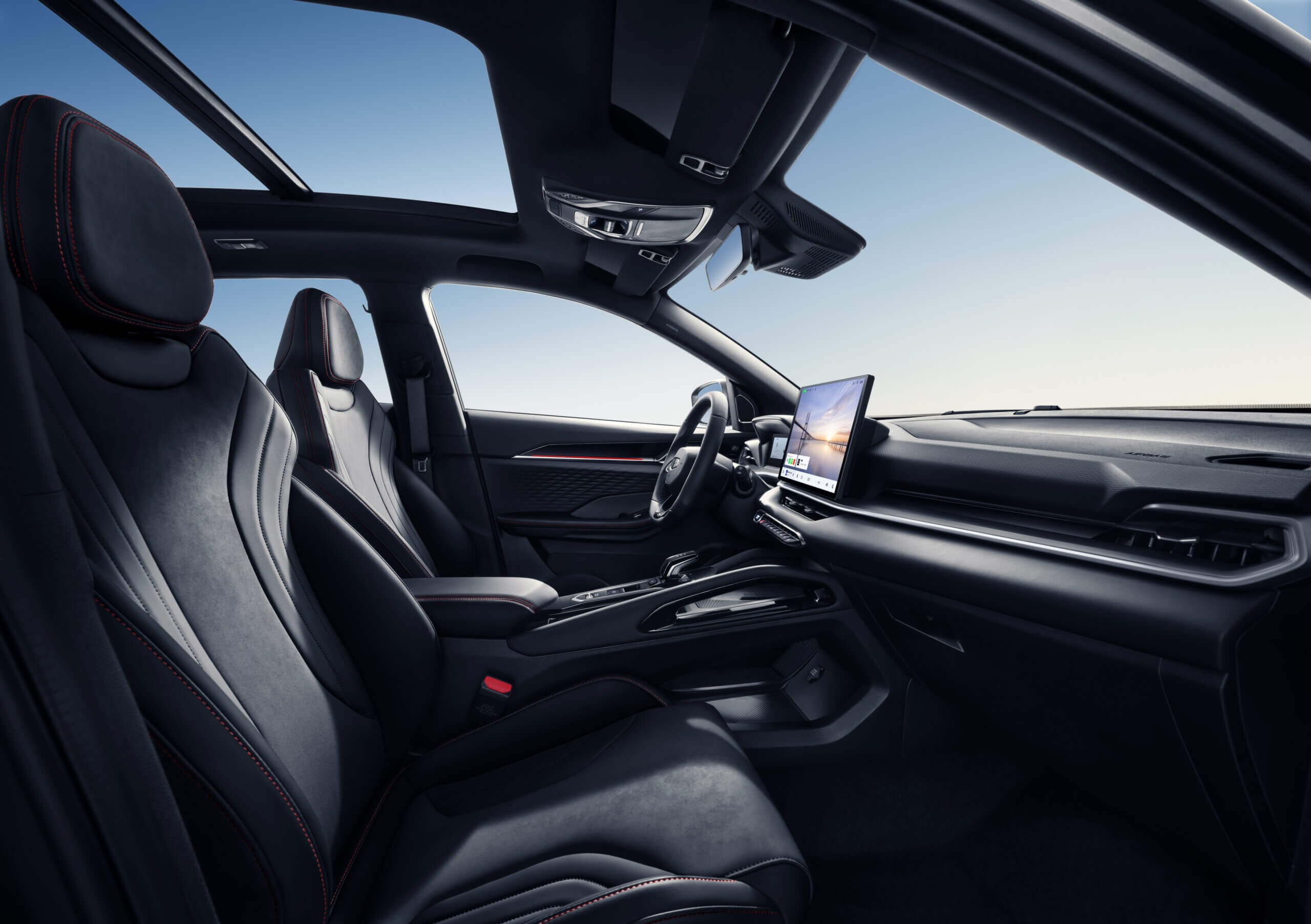 El amplio techo panorámico de apertura eléctrica llena la cabina de luz natural y refuerza la sensación de espacio, con protección solar y aislación térmica para viajar más cómodo en cada trayecto.
