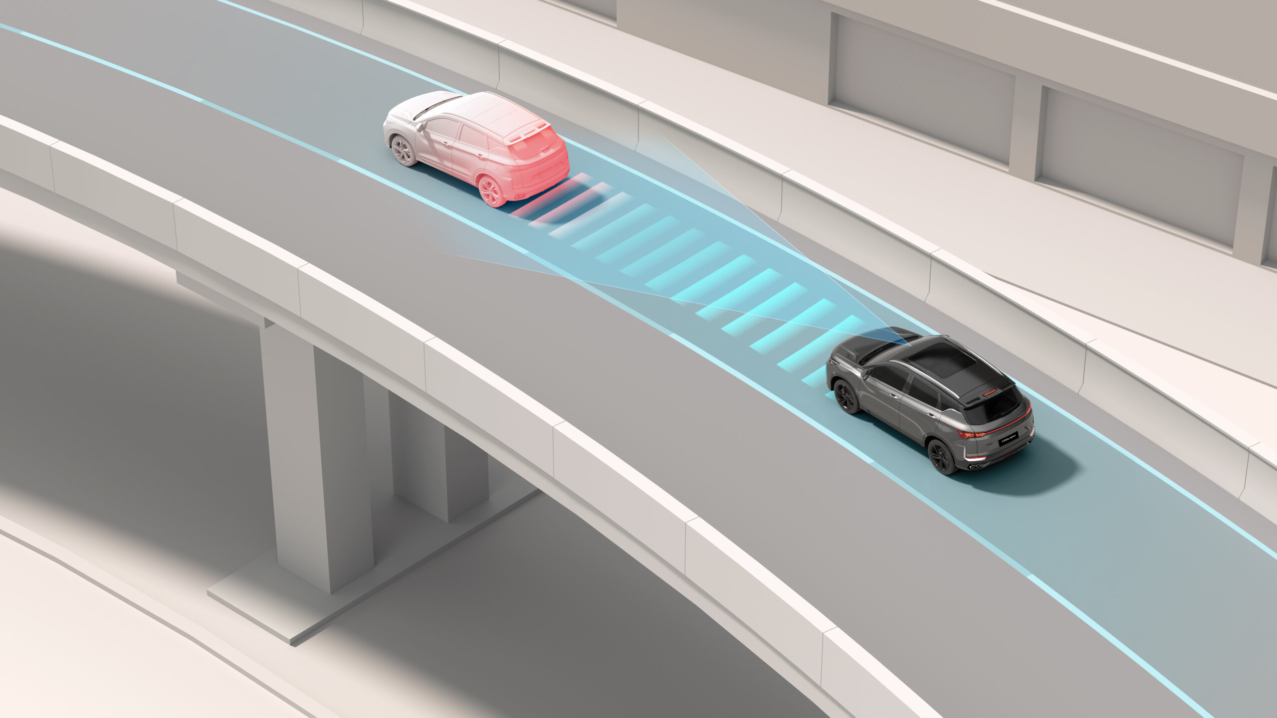 CMSR (Mitigación de Colisión Trasera): Detecta riesgo de impacto por alcance y puede activar alertas y luces para reducir la probabilidad de colisión.
