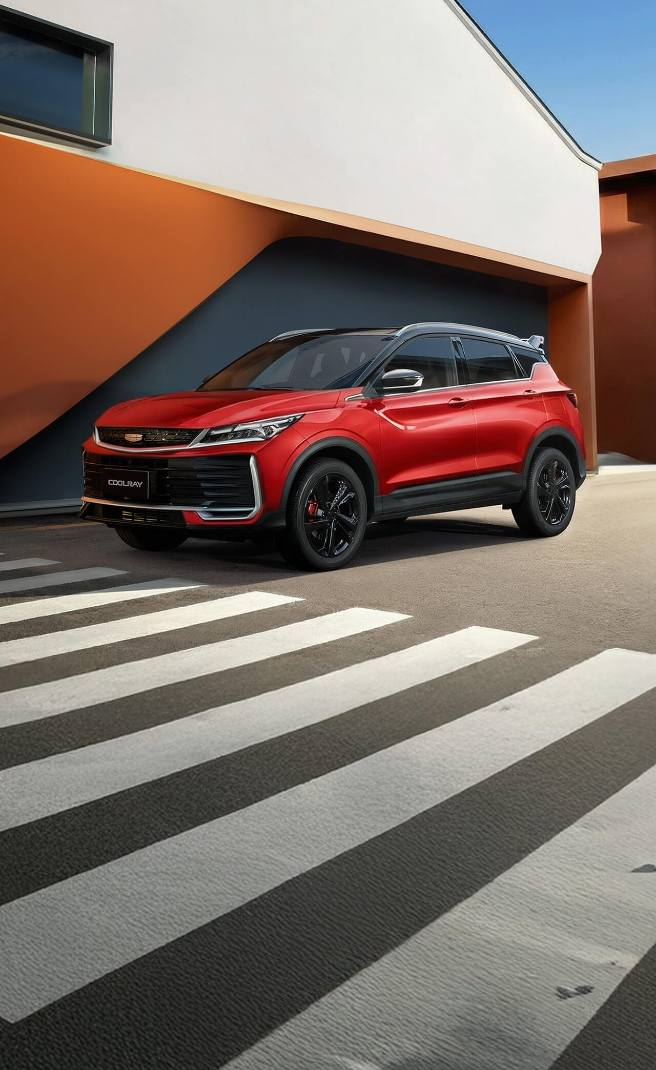 El New Coolray combina líneas vanguardistas y proporciones equilibradas para transmitir fuerza y dinamismo. Su diseño frontal refleja la esencia de un SUV robusto y moderno, pensado para destacar en cualquier entorno.